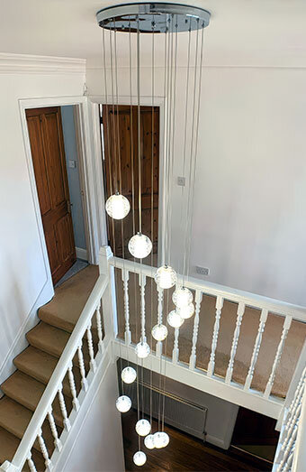 Professional installation of all lighting types including pendant lights, downlights, oyster lights and chandeliers for homes and commercial spaces.